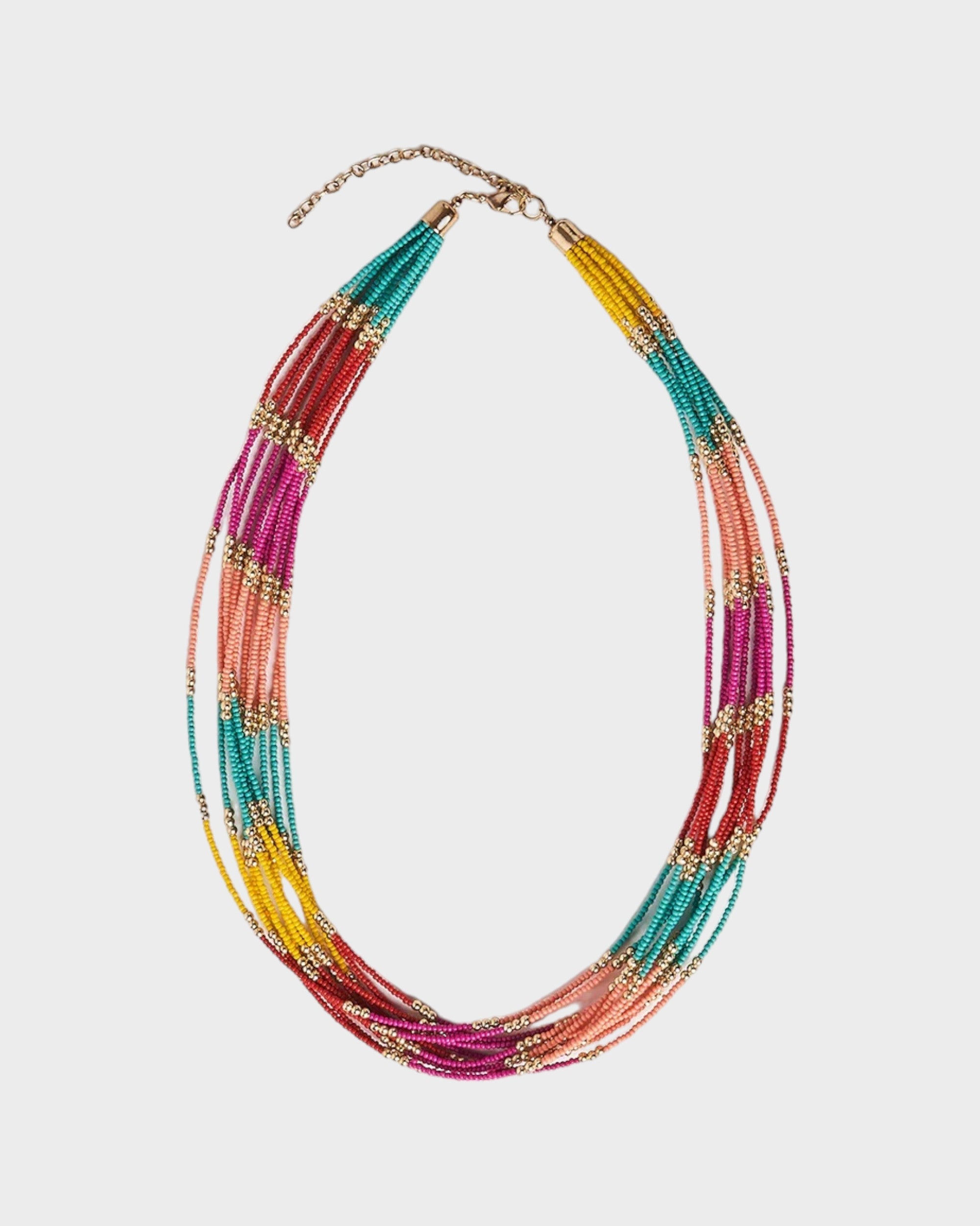 A multicolor beaded necklace with multiple layers - a chic accessory that will add a lively pop of color to your outfit. Featuring playful rainbow beads, this necklace is a fun and ageless addition to any wardrobe. Perfect for completing your summer looks.