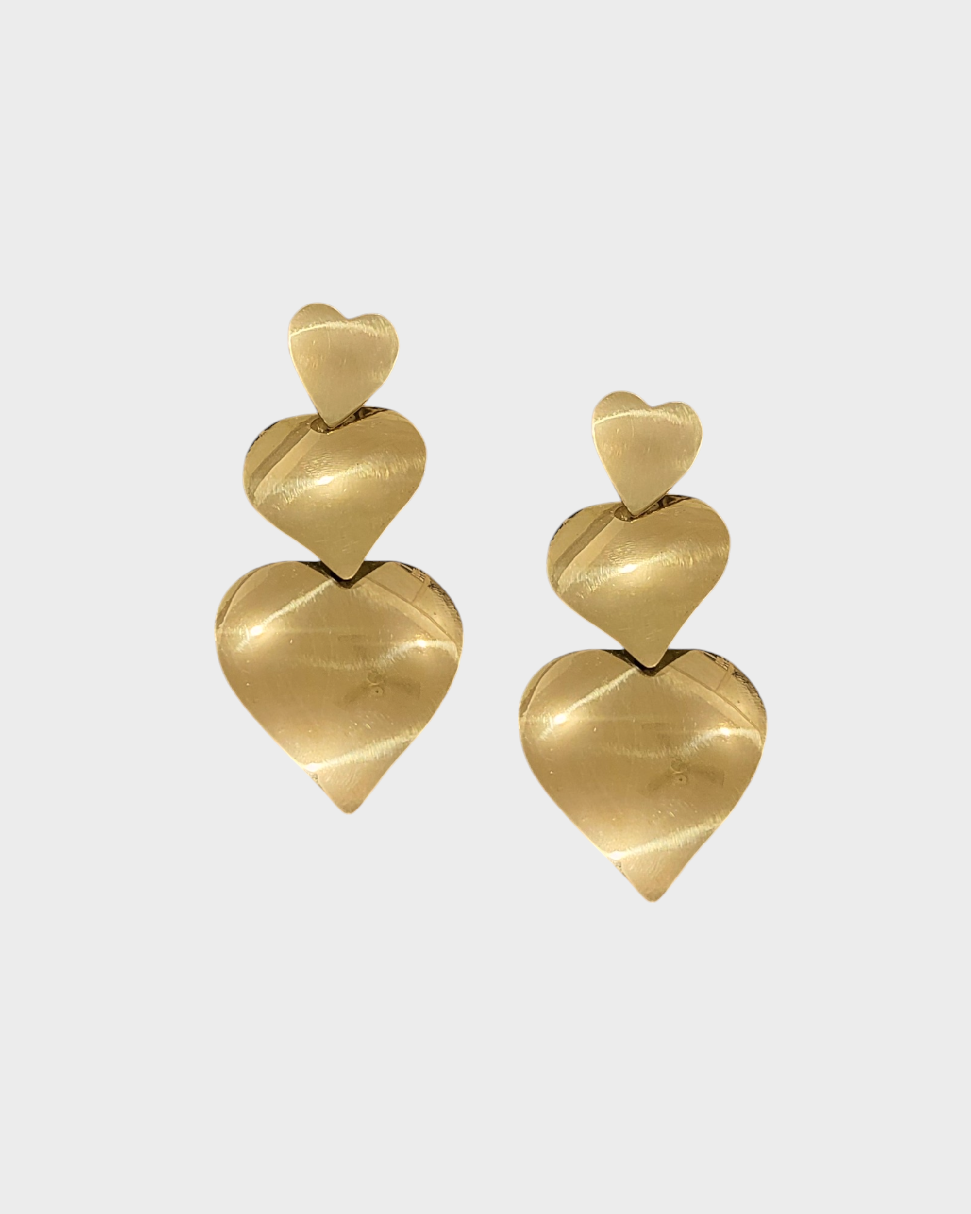 Enhance your accessory collection with these exquisite brass heart earrings. Made of shimmering brass, they exude sophistication and elevate any ensemble. Suitable for everyday wear and special events, these earrings are a must-have for those who appreciate a subtle touch of glamour.