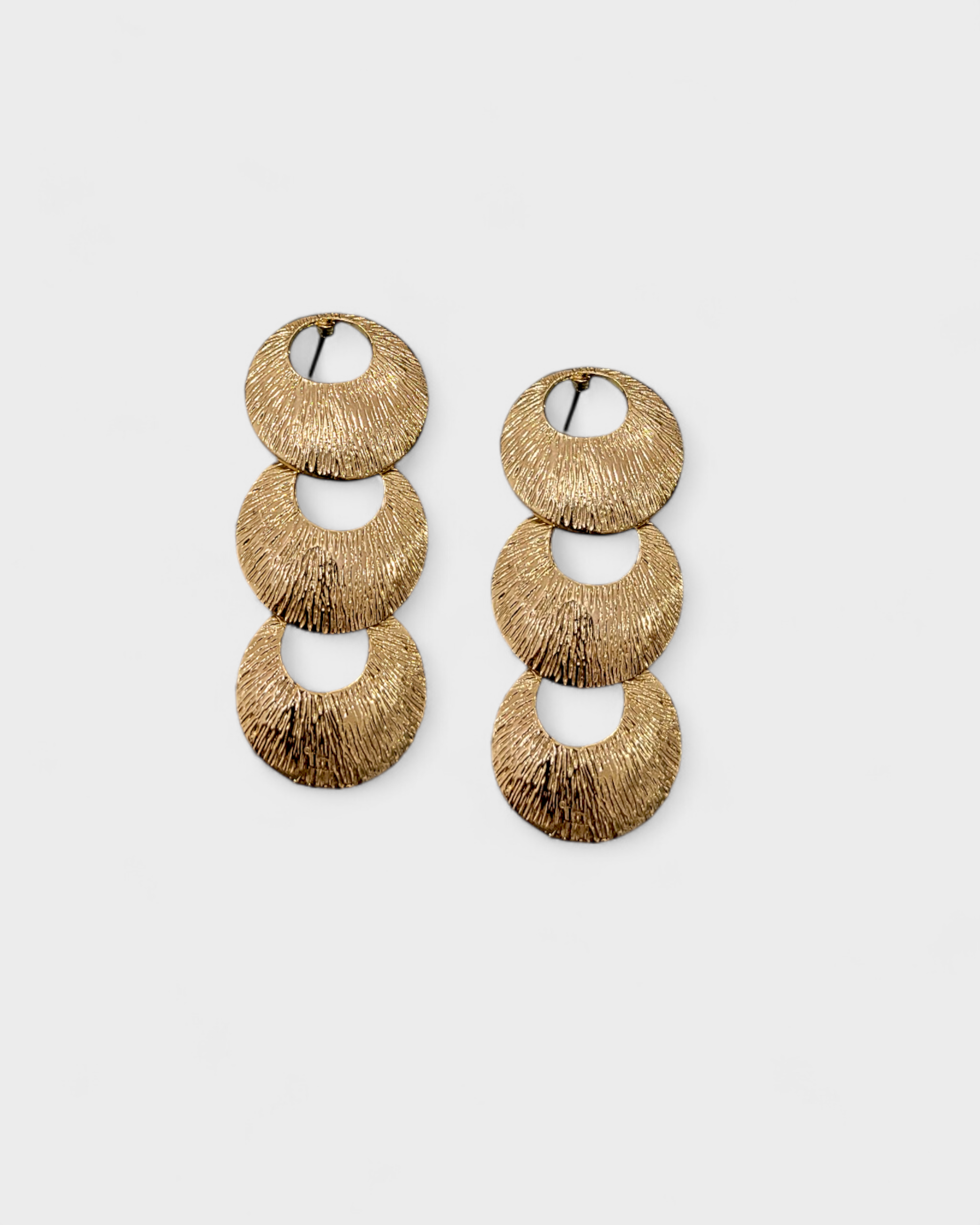 Elevate your style with these stunning gold tone earrings featuring a chic circular design. Crafted from high-quality metal, they add a touch of elegance to any outfit, making them perfect for both casual and formal occasions. Lightweight and comfortable, these earrings are a must-have accessory for anyone looking to shine.