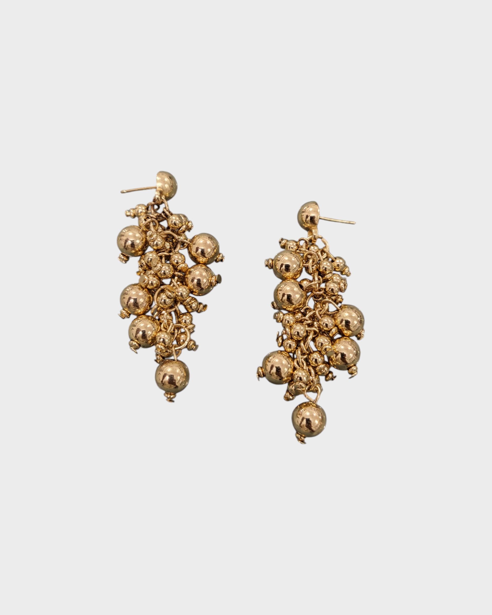 Elevate your style with these stunning gold tone earrings featuring a playful mix of beads and balls. Perfect for adding a touch of elegance to any outfit, these earrings are lightweight and comfortable for all-day wear. Whether you're dressing up for a night out or adding flair to your everyday look, these earrings are a must-have accessory.