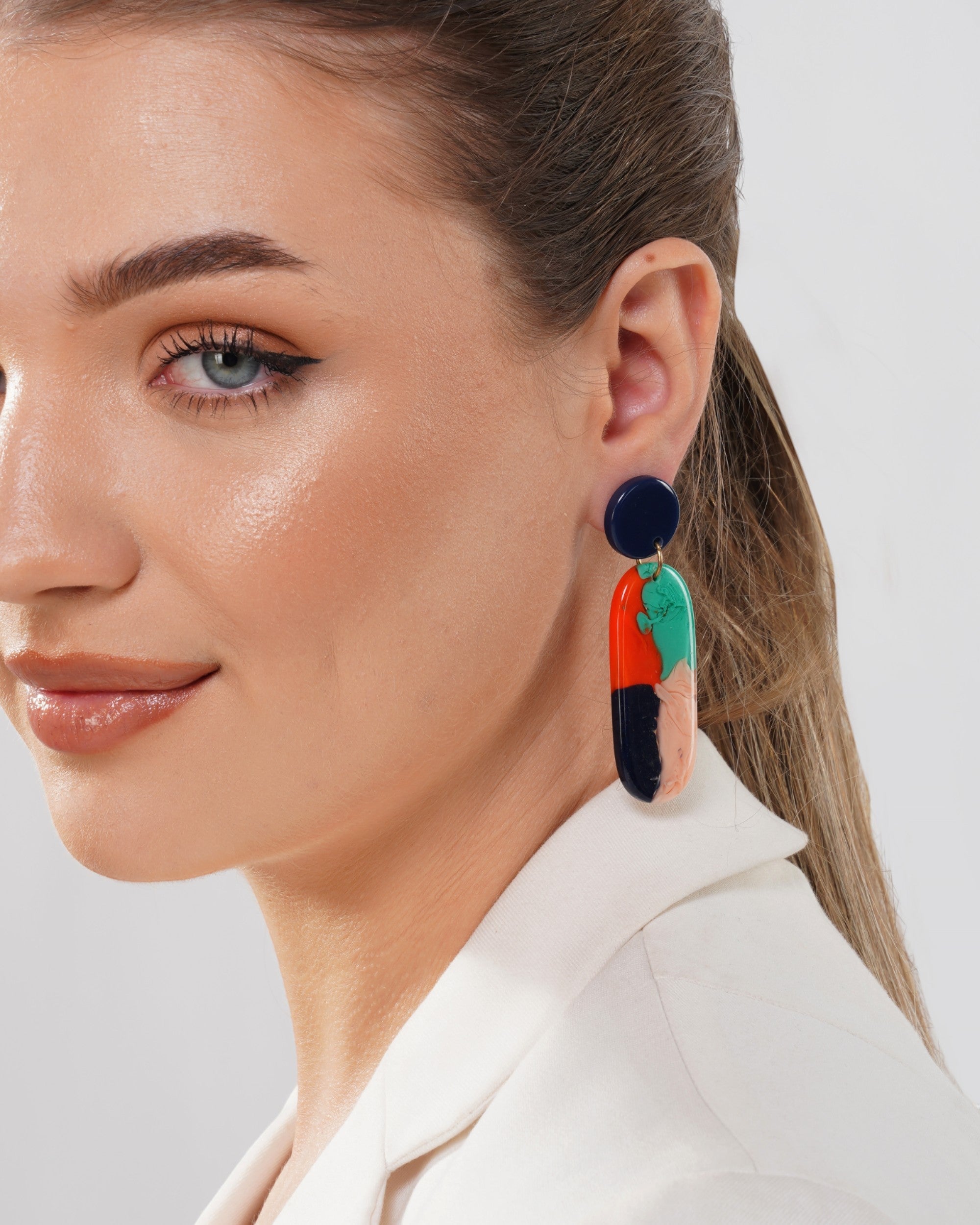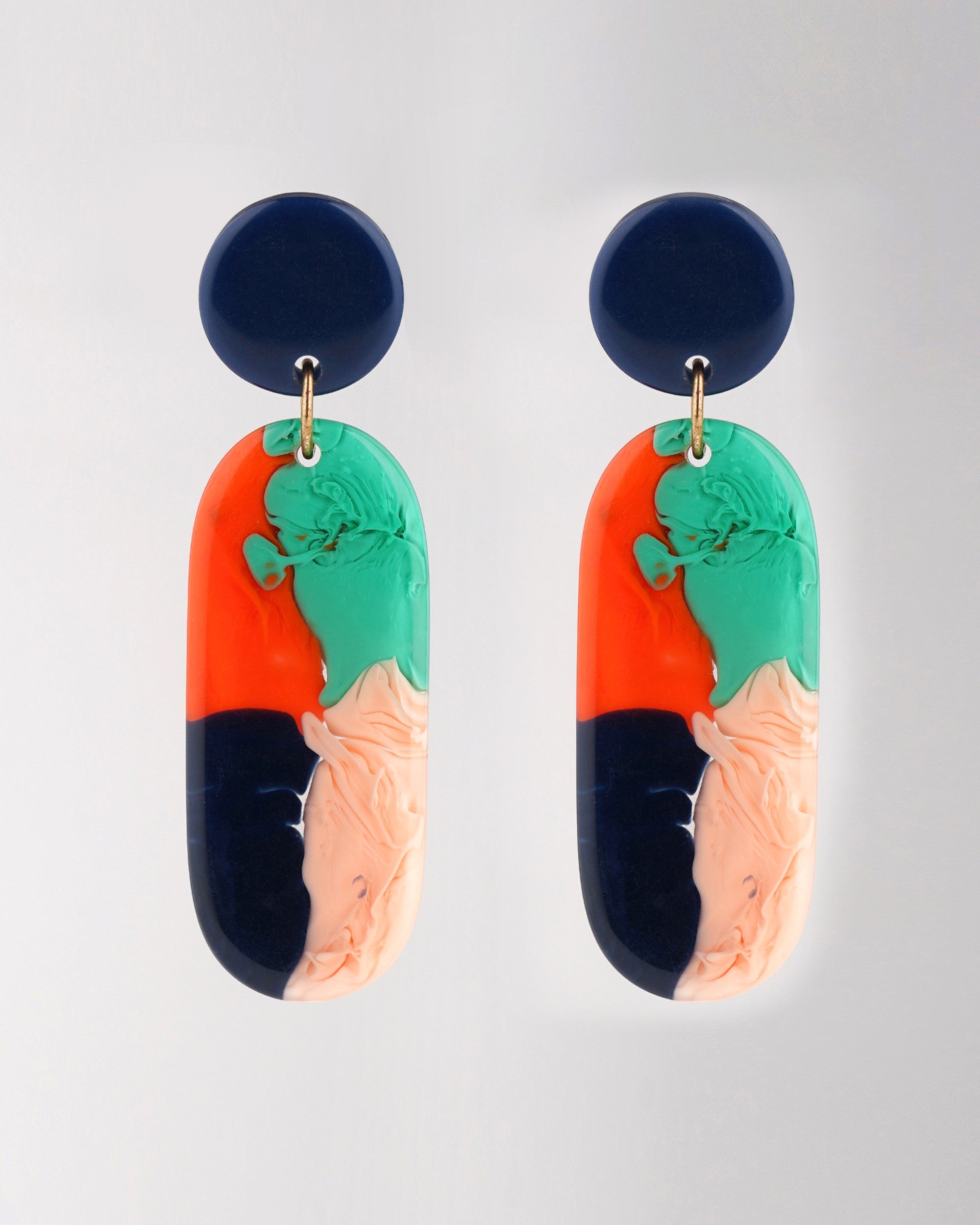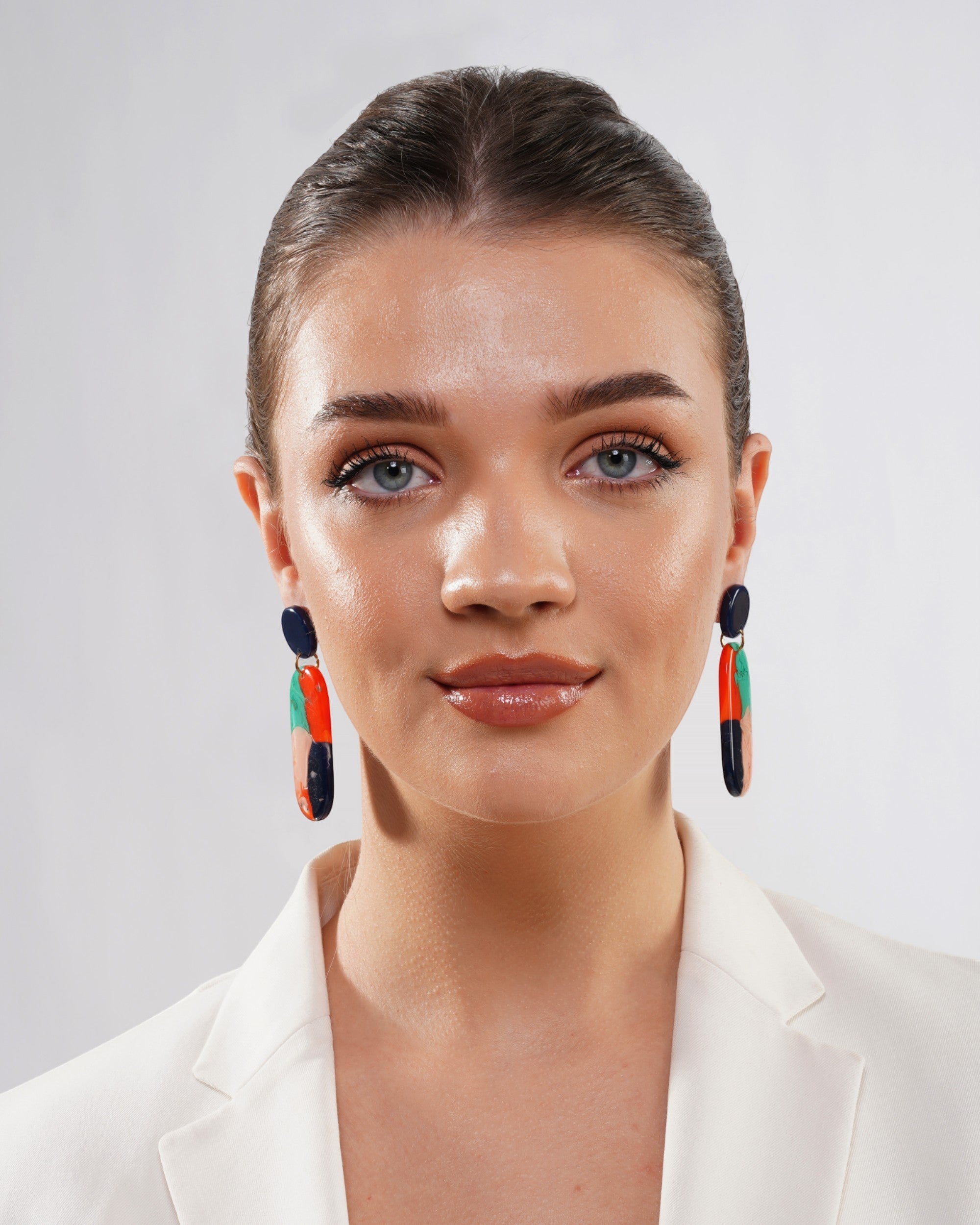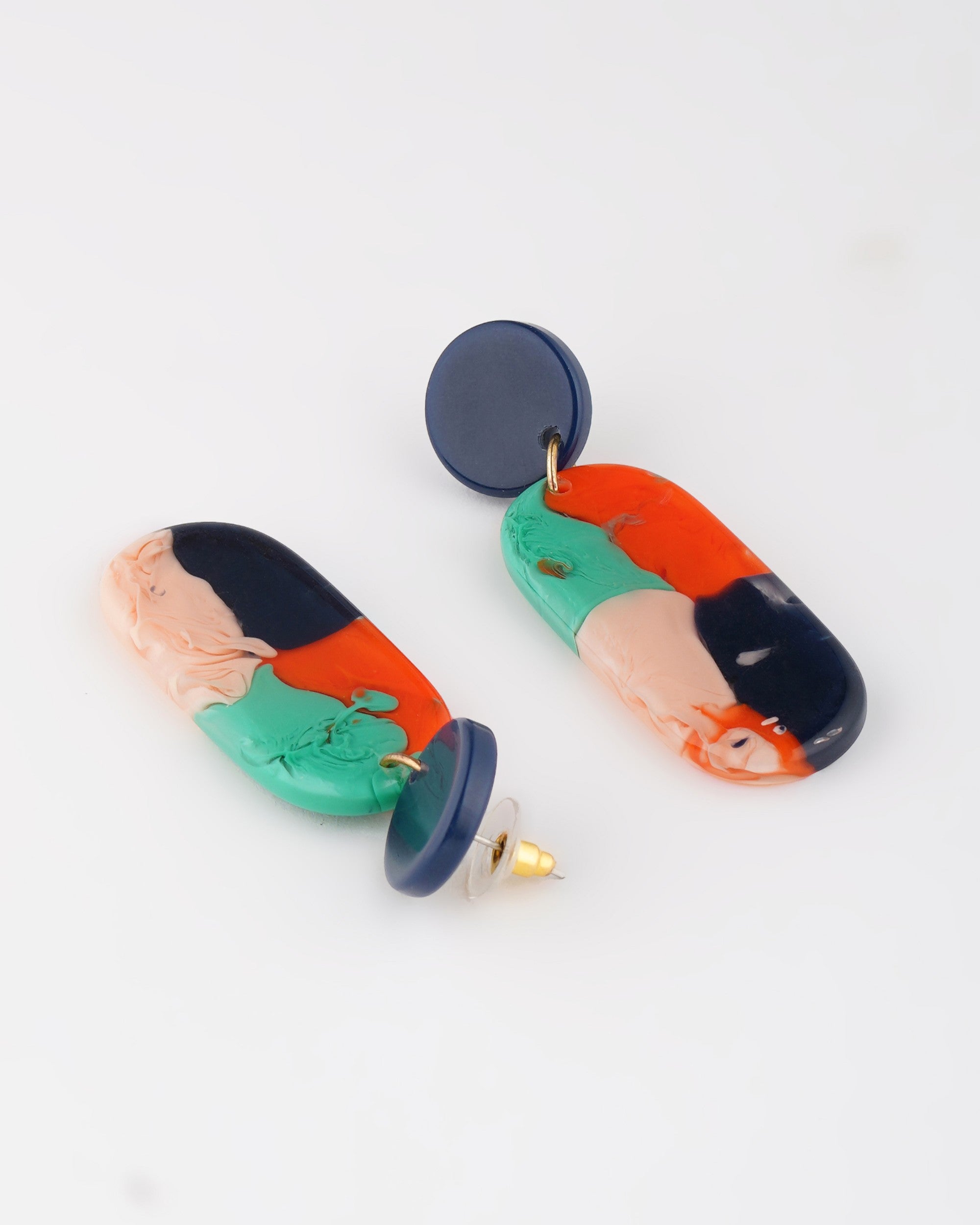 Brighten up your look with these stunning colorful earrings! Featuring a vibrant blue, orange, and green design, they add a playful touch to any outfit. Perfect for both casual outings and special occasions, these earrings are sure to turn heads and spark conversations.