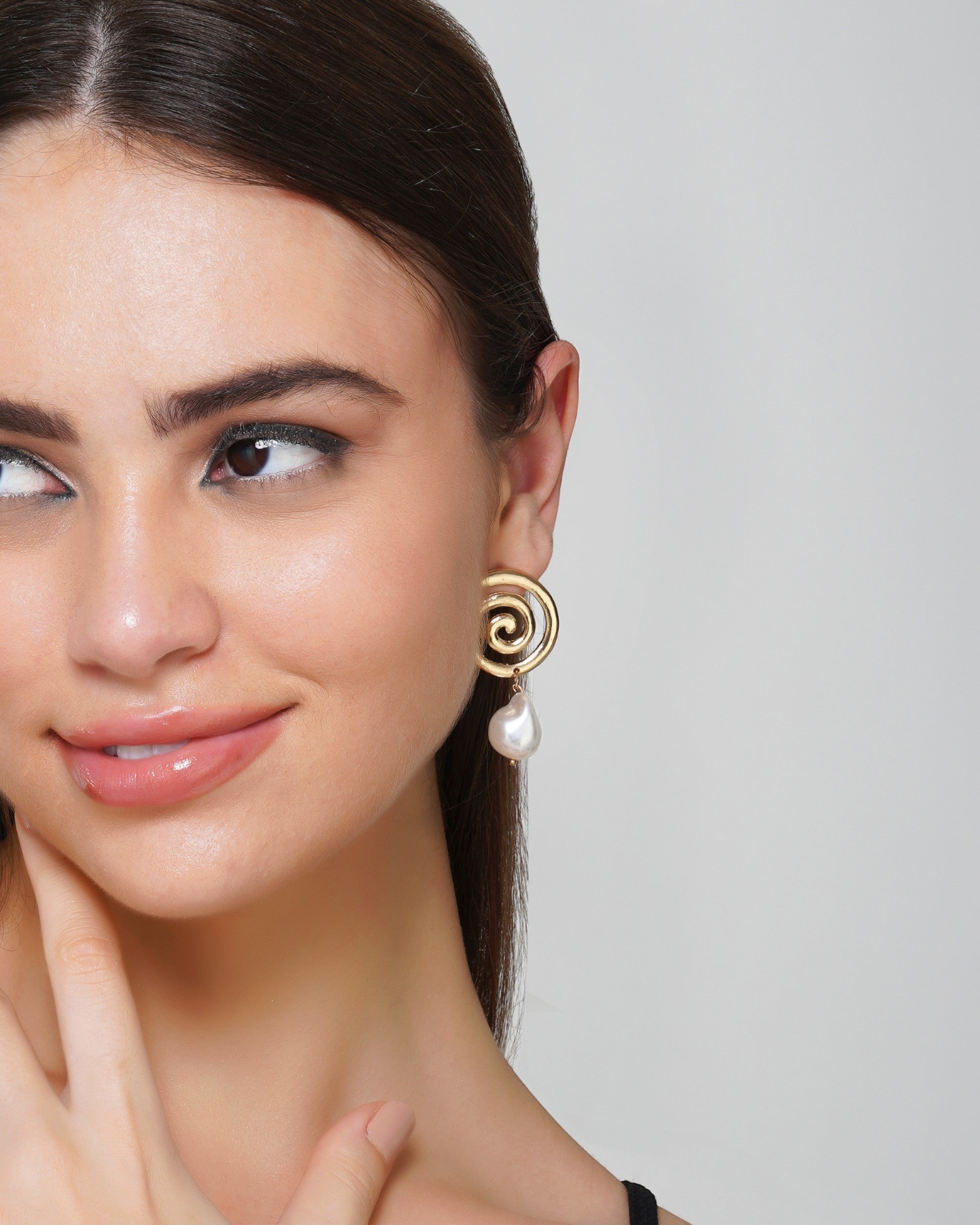 Discover our eye-catching Spiral Earrings featuring pearl bead pendants. With a striking spiral pattern, these earrings demand notice. From elegant evenings out to elevating your daily style, these earrings are guaranteed to make a statement.
