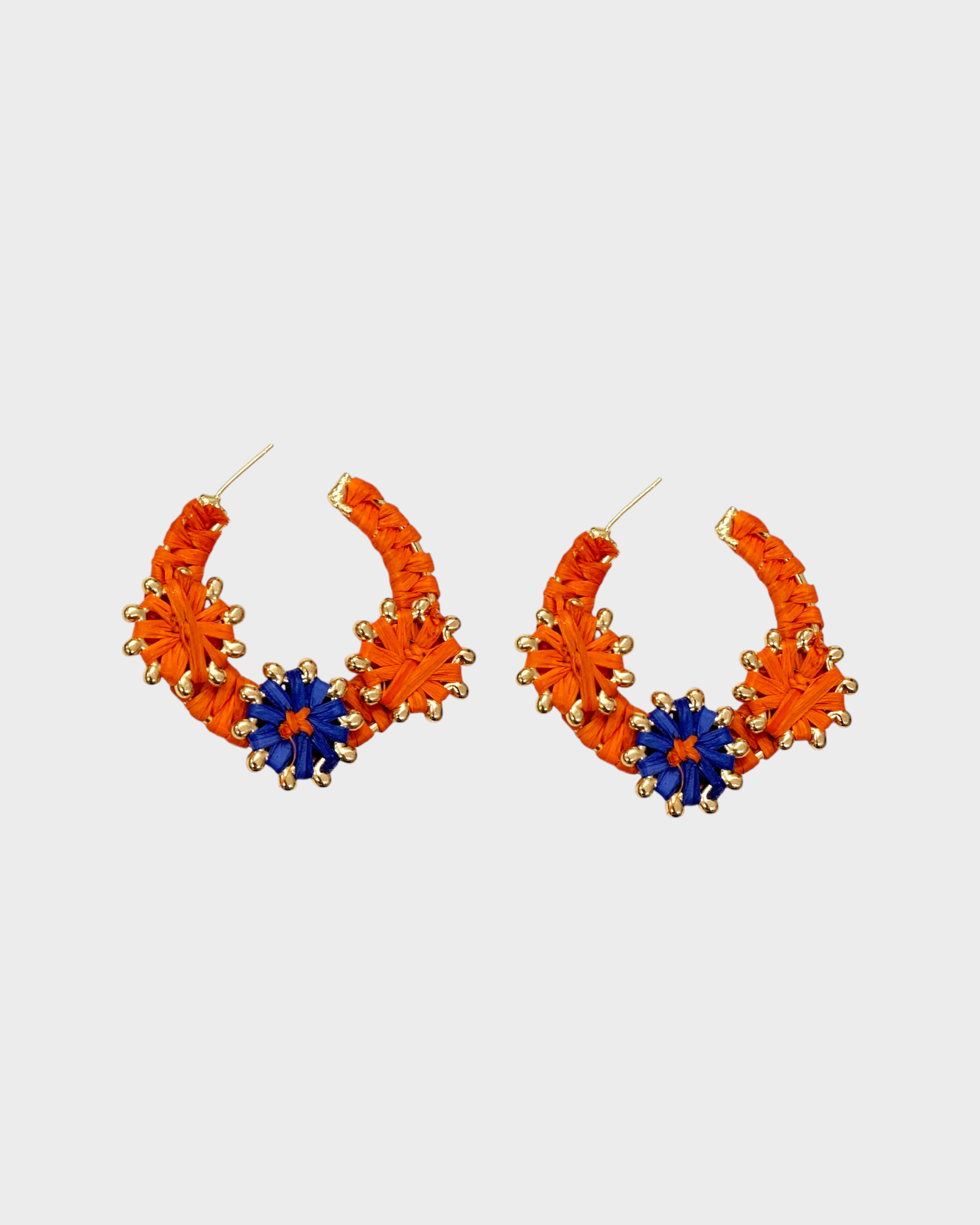 Indulge in the beauty of nature with our Woven Raffia Floral Accent Earrings. These round earrings add a touch of elegance to any outfit with their delicate floral design and unique woven raffia material. Experience the perfect blend of style and sustainability in one stunning accessory.