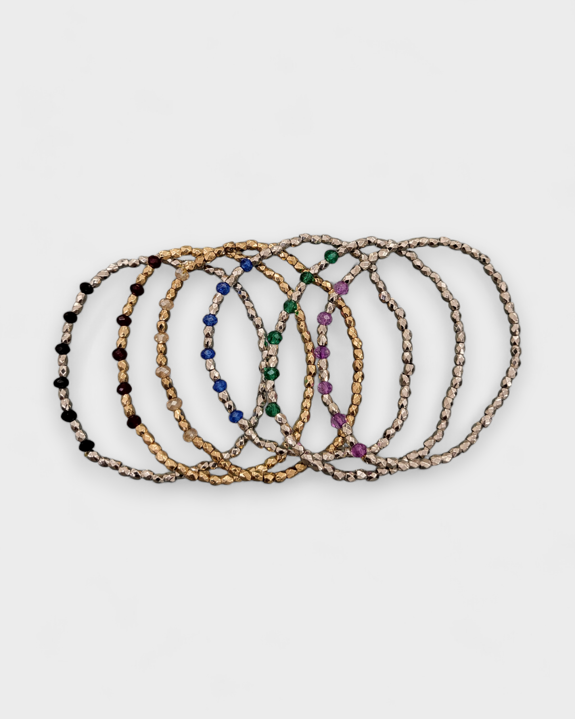 Elevate your accessory game with this stunning 6-piece bracelet set featuring a vibrant stack of six bracelets adorned with multicolored stones. Each piece is crafted with premium copper-coated beads, ensuring durability and a stylish shine. The stretch quality makes them easy to wear and perfect for layering or wearing solo. Add a pop of color to any outfit with this eye-catching set!