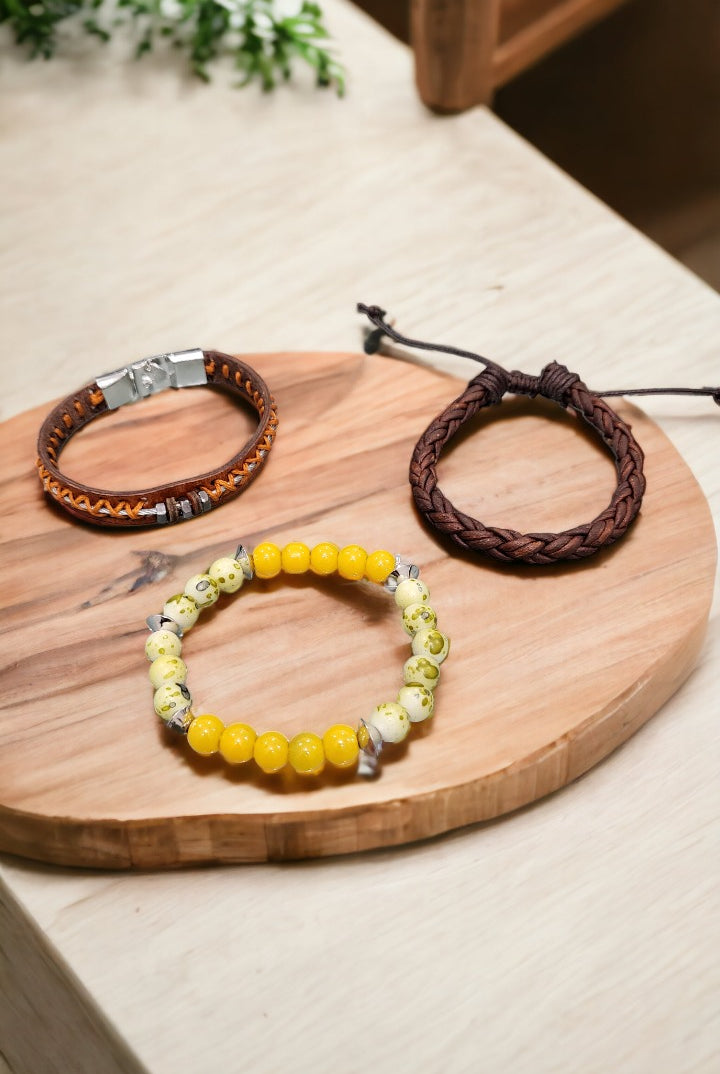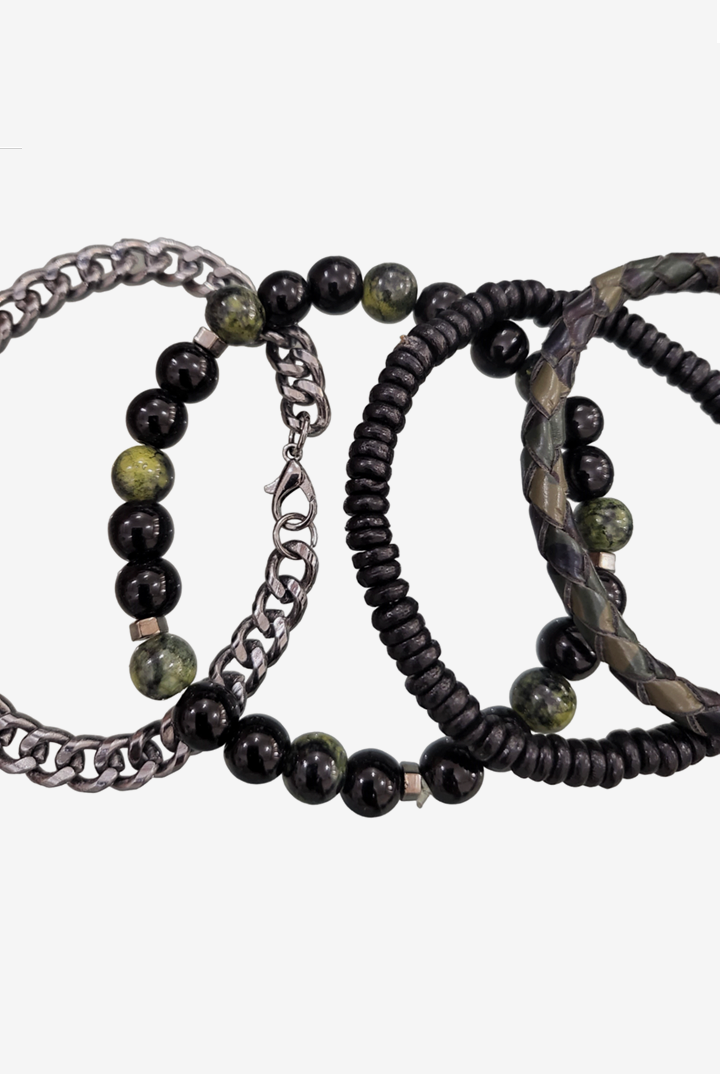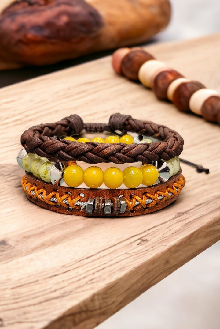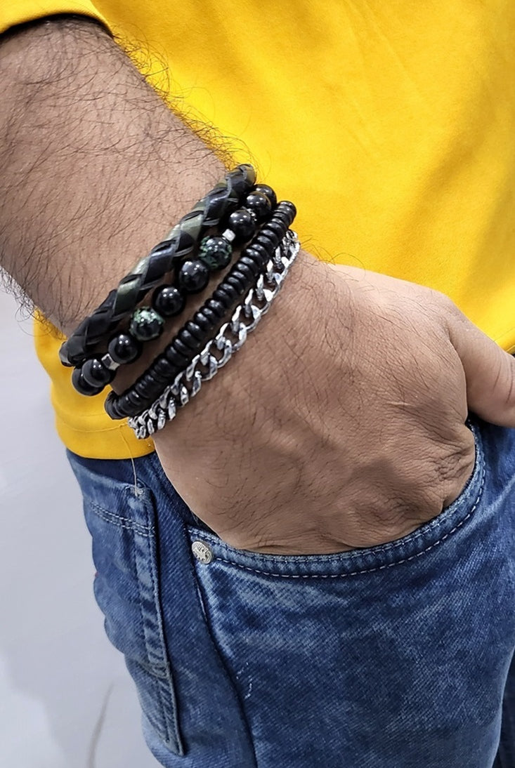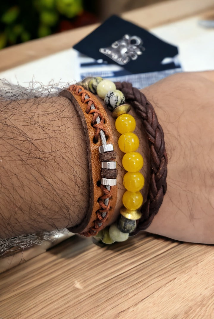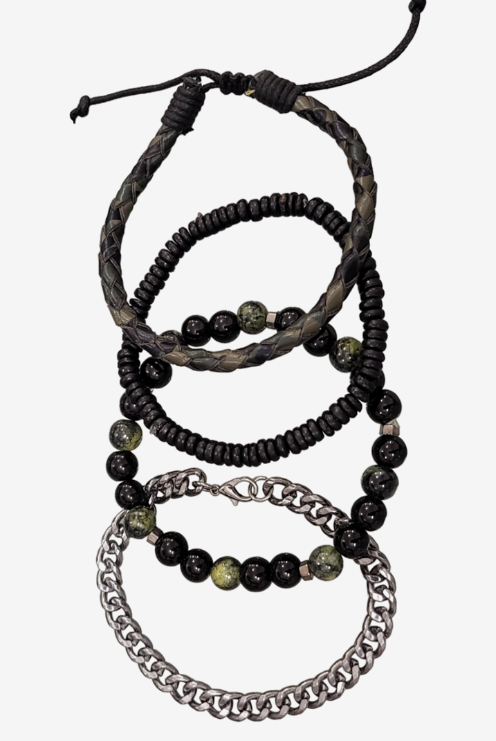 Discover our fashionable Men's sets featuring bracelet bundles, created with premium leather and embellished with distinctive beads. Enhance any attire, formal or casual, with this ideal addition. Trendy and resilient, these bracelets bring a touch of personality to your wrist without compromising on comfort.