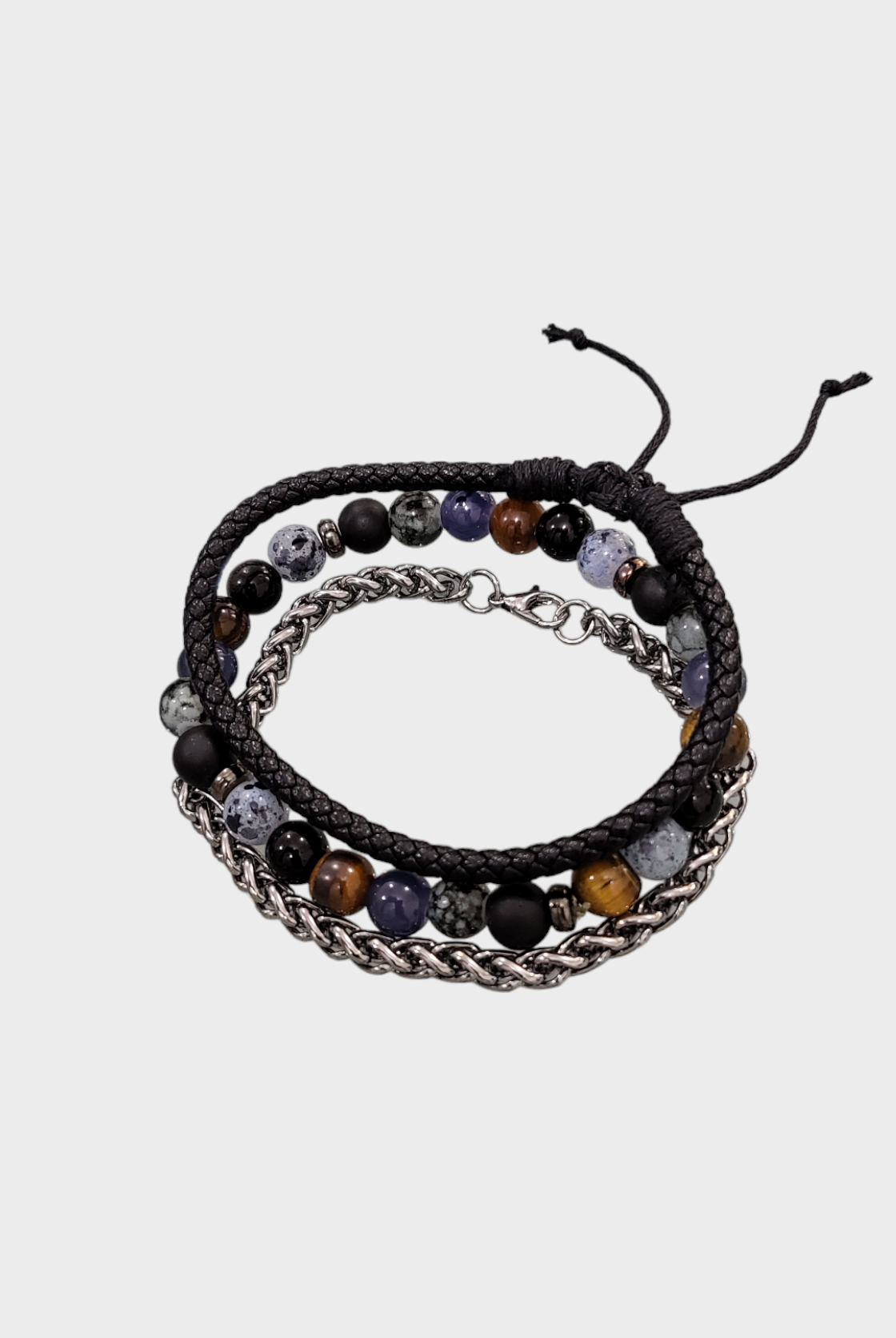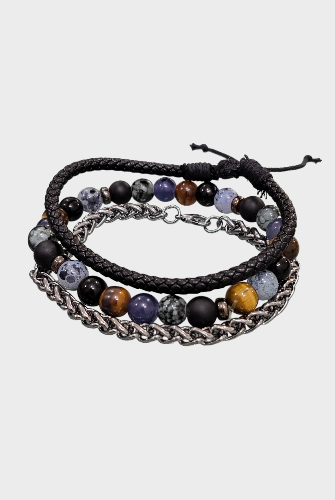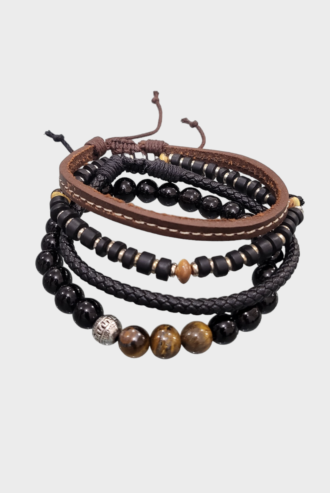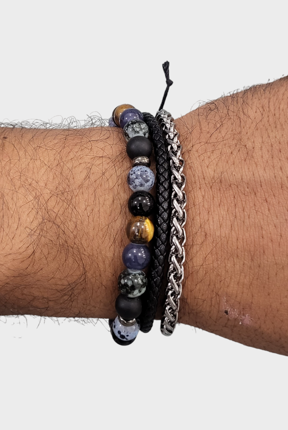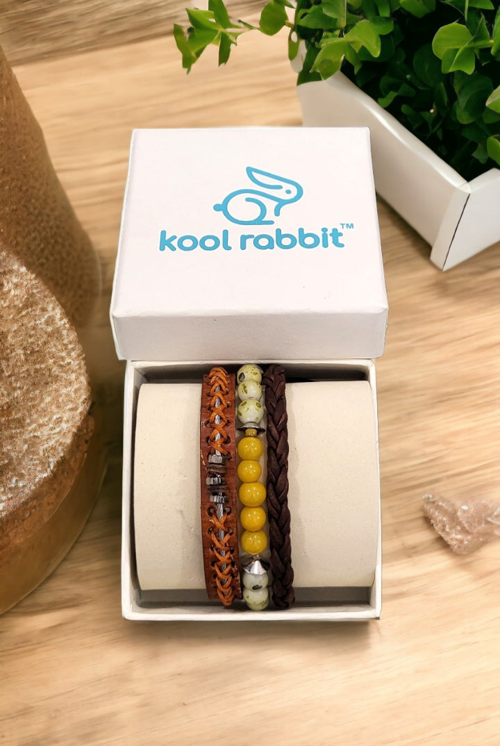 Discover our fashionable Men's sets featuring bracelet bundles, created with premium leather and embellished with distinctive beads. Enhance any attire, formal or casual, with this ideal addition. Trendy and resilient, these bracelets bring a touch of personality to your wrist without compromising on comfort.