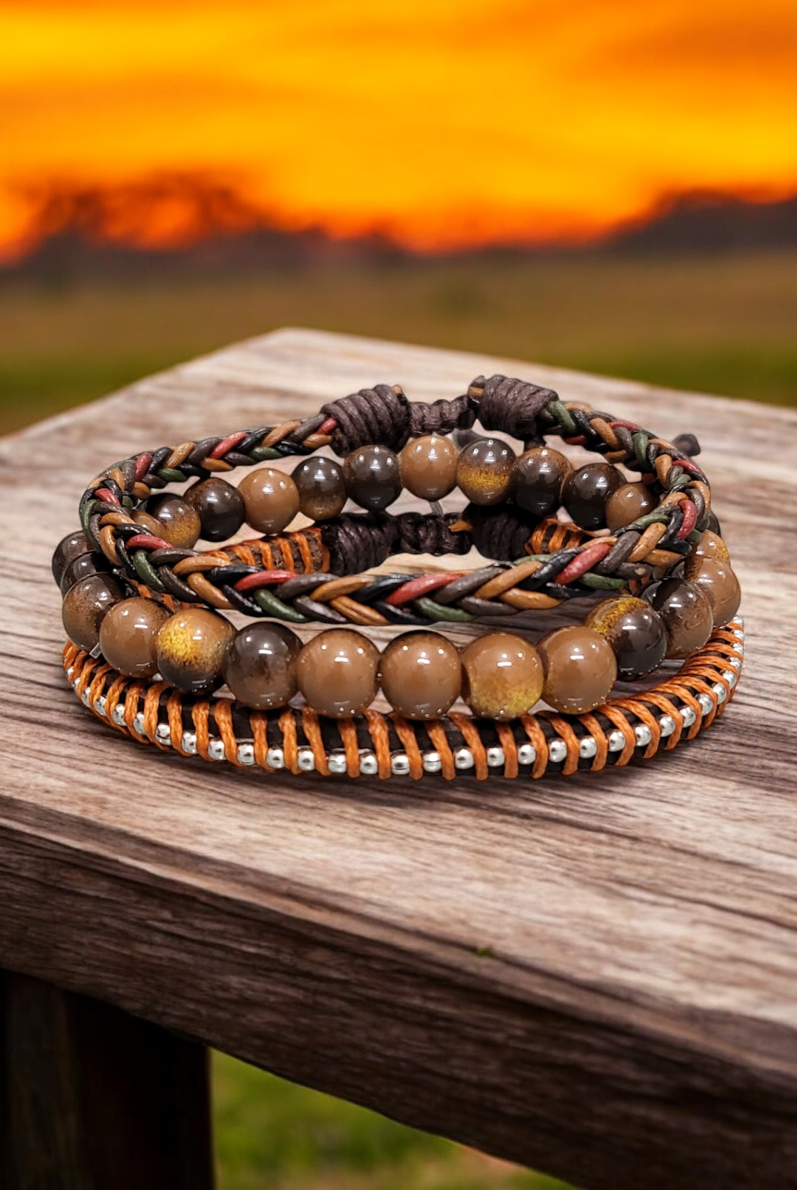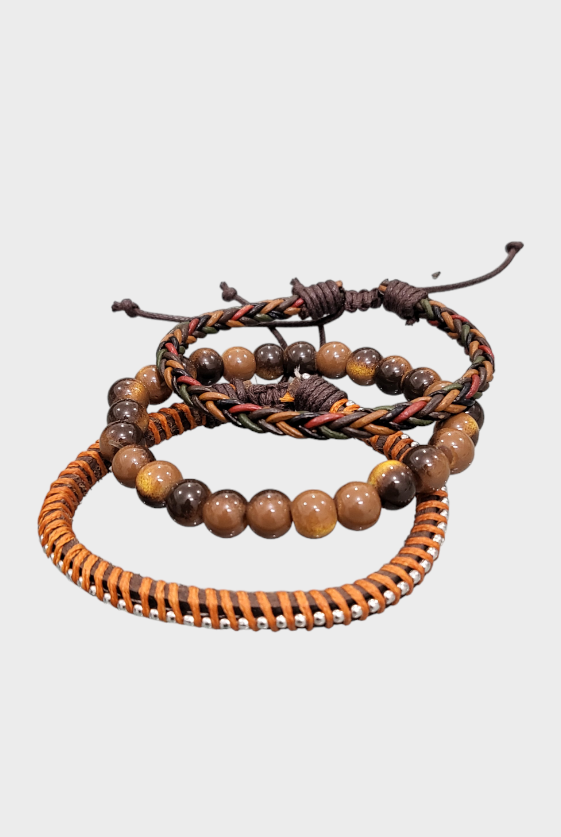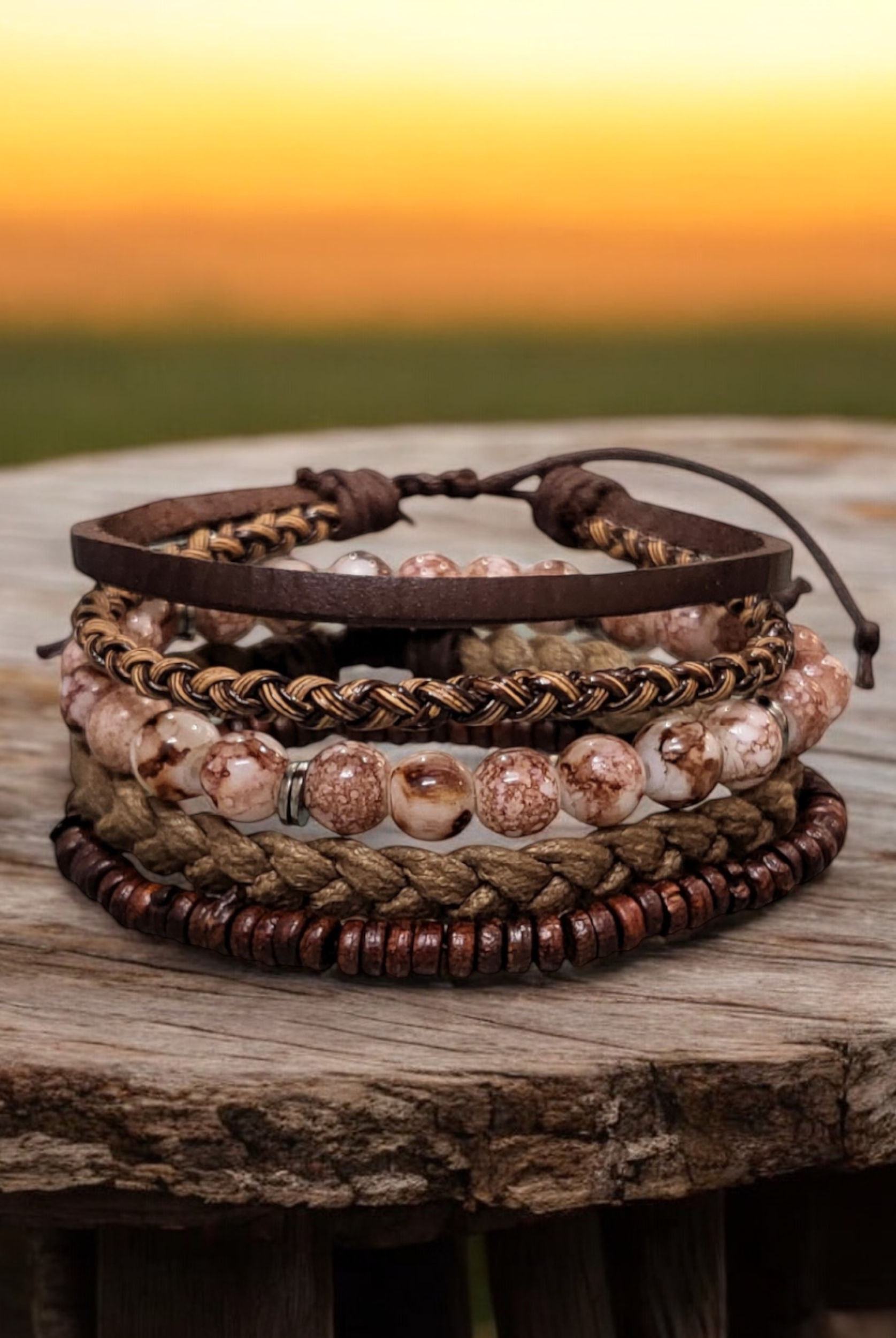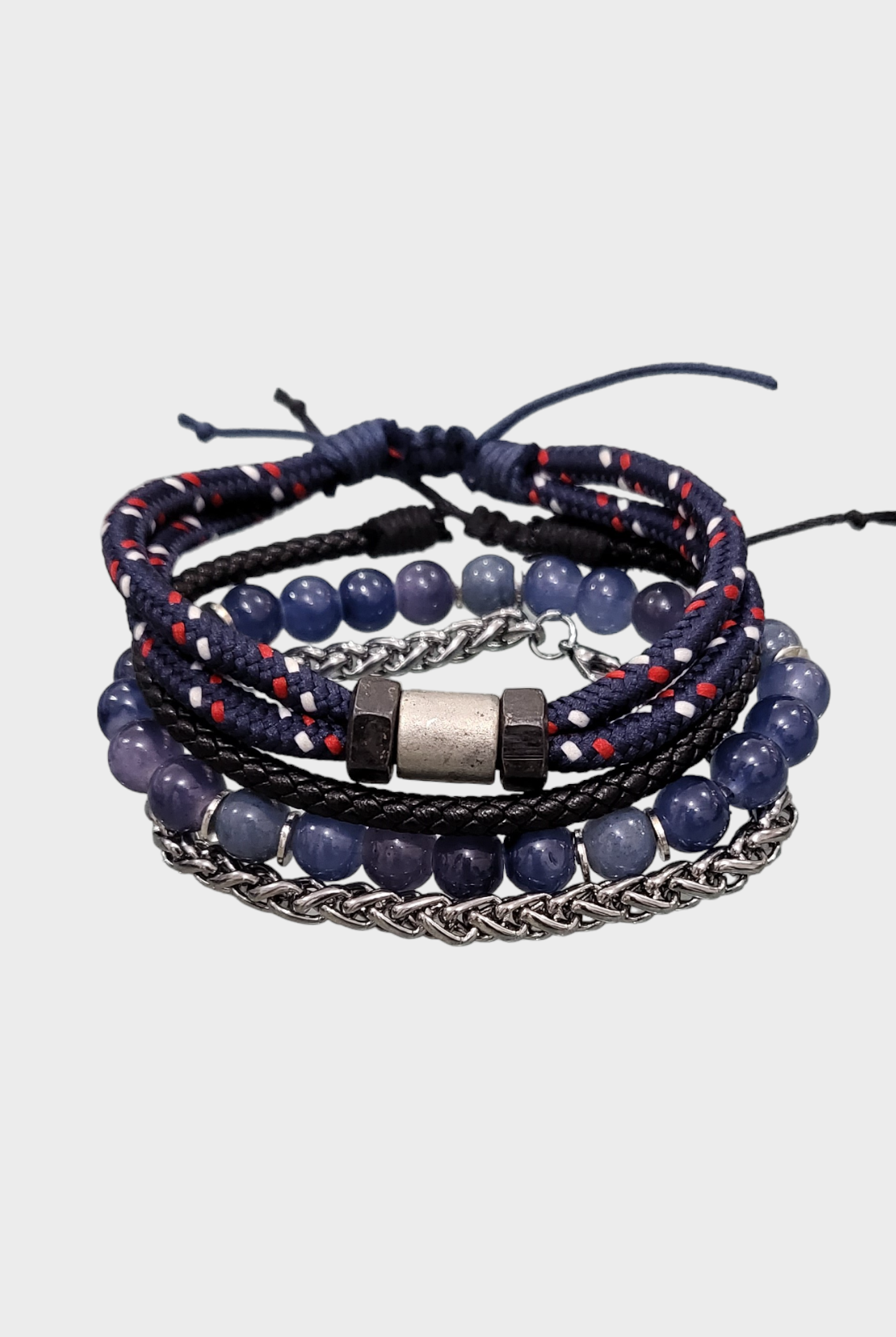 Discover our fashionable Men's sets featuring bracelet bundles, created with premium leather and embellished with distinctive beads. Enhance any attire, formal or casual, with this ideal addition. Trendy and resilient, these bracelets bring a touch of personality to your wrist without compromising on comfort.