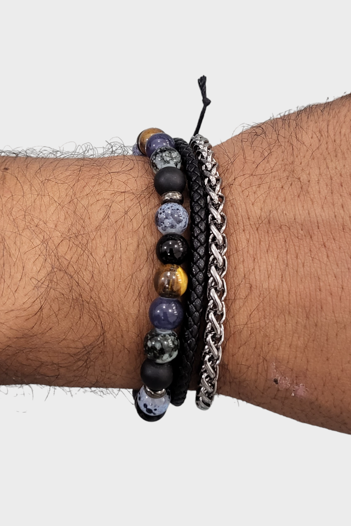 This set of bracelets can be stacked together or worn separately, making them a versatile addition to any outfit. Its stylish design complements a variety of looks. Enhance your wardrobe with these versatile bracelets that can be worn together or separately. Their stylish design makes them the perfect addition to any outfit, elevating your style and keeping you on trend.