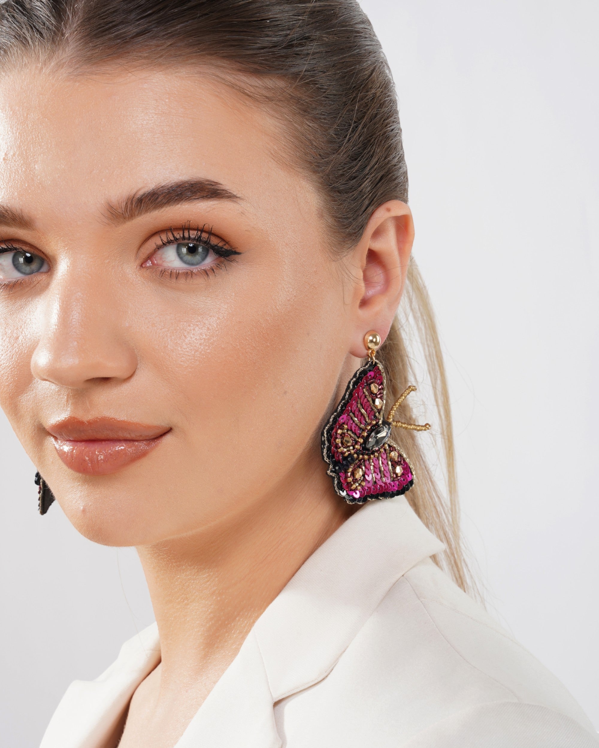 Butterly beaded earring Expertly crafted and adorned with intricate beading, these butterfly earrings are a stunning addition to any jewelry collection. Made with high-quality materials, they are the perfect choice for elevating any outfit.