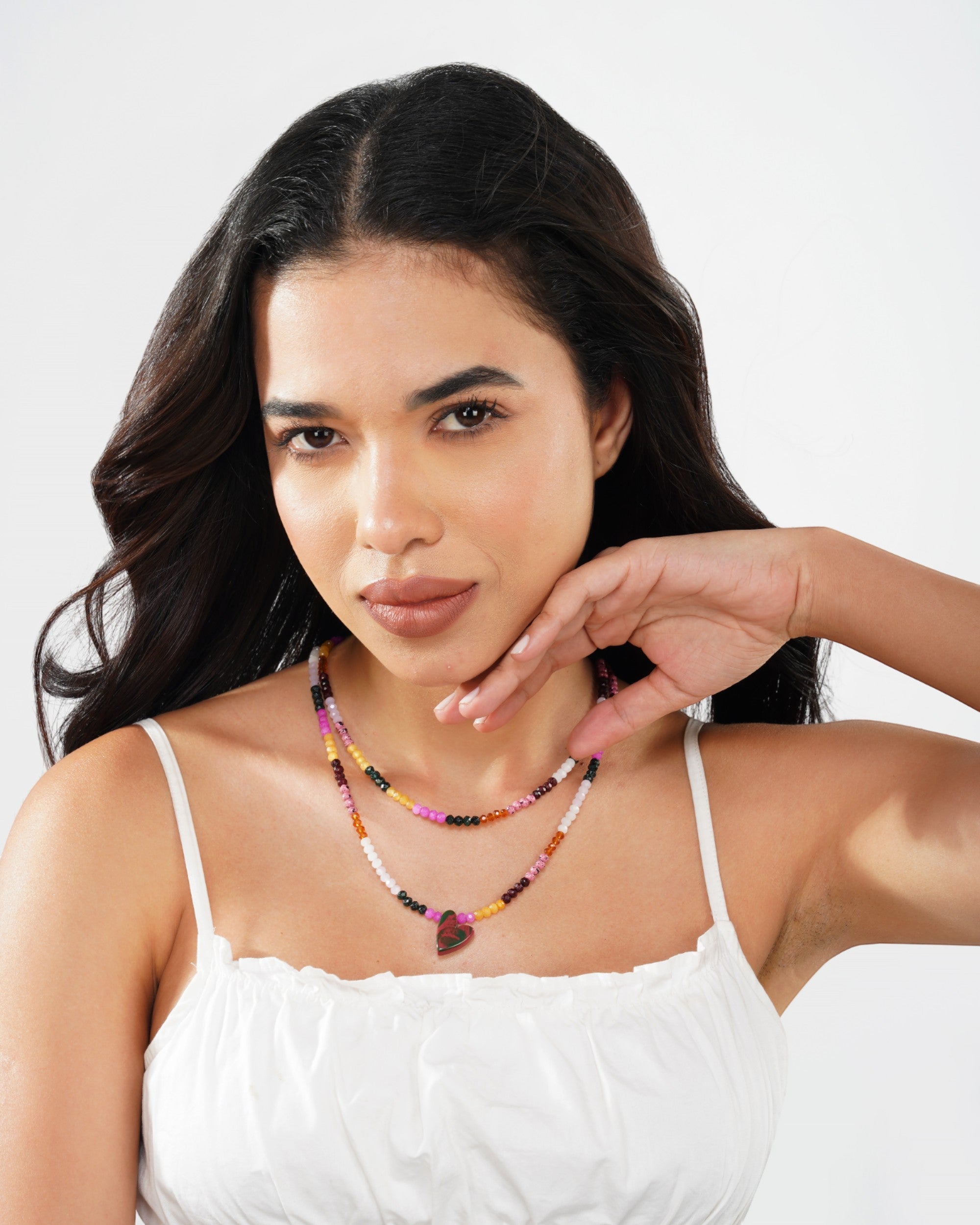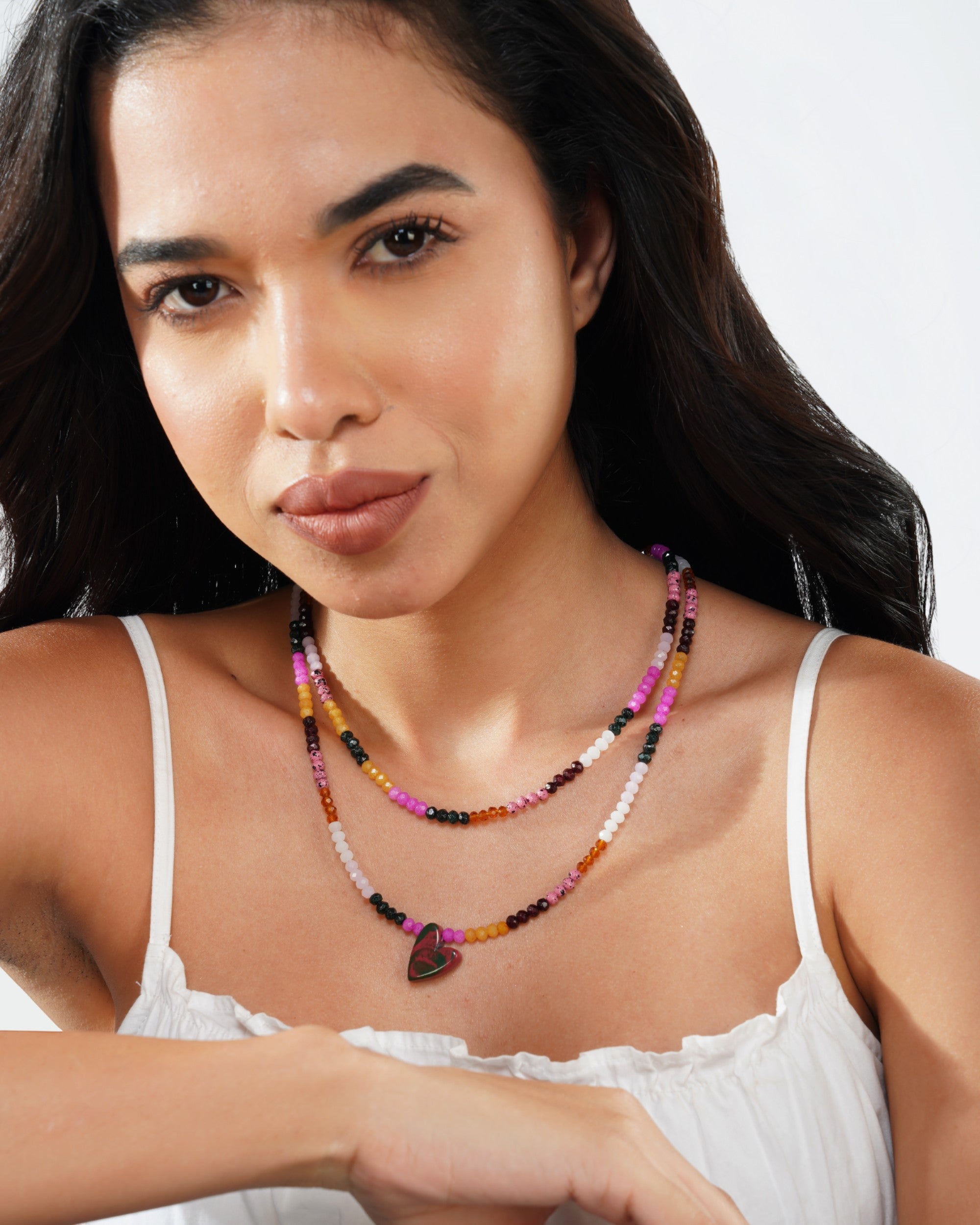 Elevate your style with this stunning multi-layered necklace featuring a delicate heart charm. Perfect for adding a touch of romance to any outfit, this versatile piece can be worn alone or layered with your favorite jewelry. Its unique design makes it a great gift for someone special or a lovely treat for yourself.